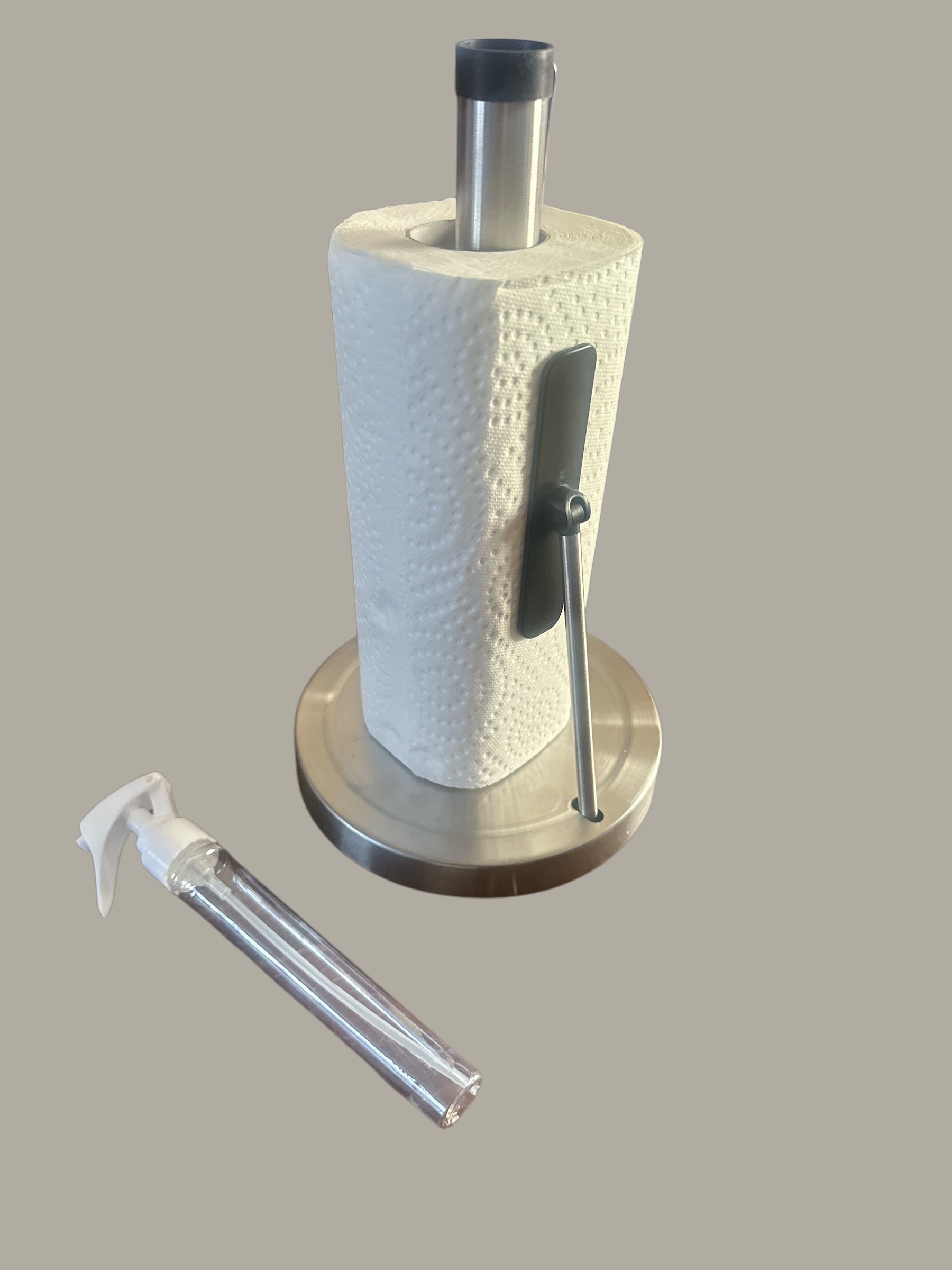 Mijn aanrecht ziet er nu veel netter uit. De combinatie van de papieren handdoek en sprayfles is perfect voor snelle schoonmaakbeurten.